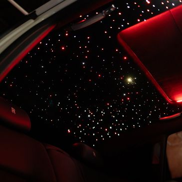 Our starlight headliners are inspired by classic Rolls-Royce star ceilings and custom-designed for each vehicle.